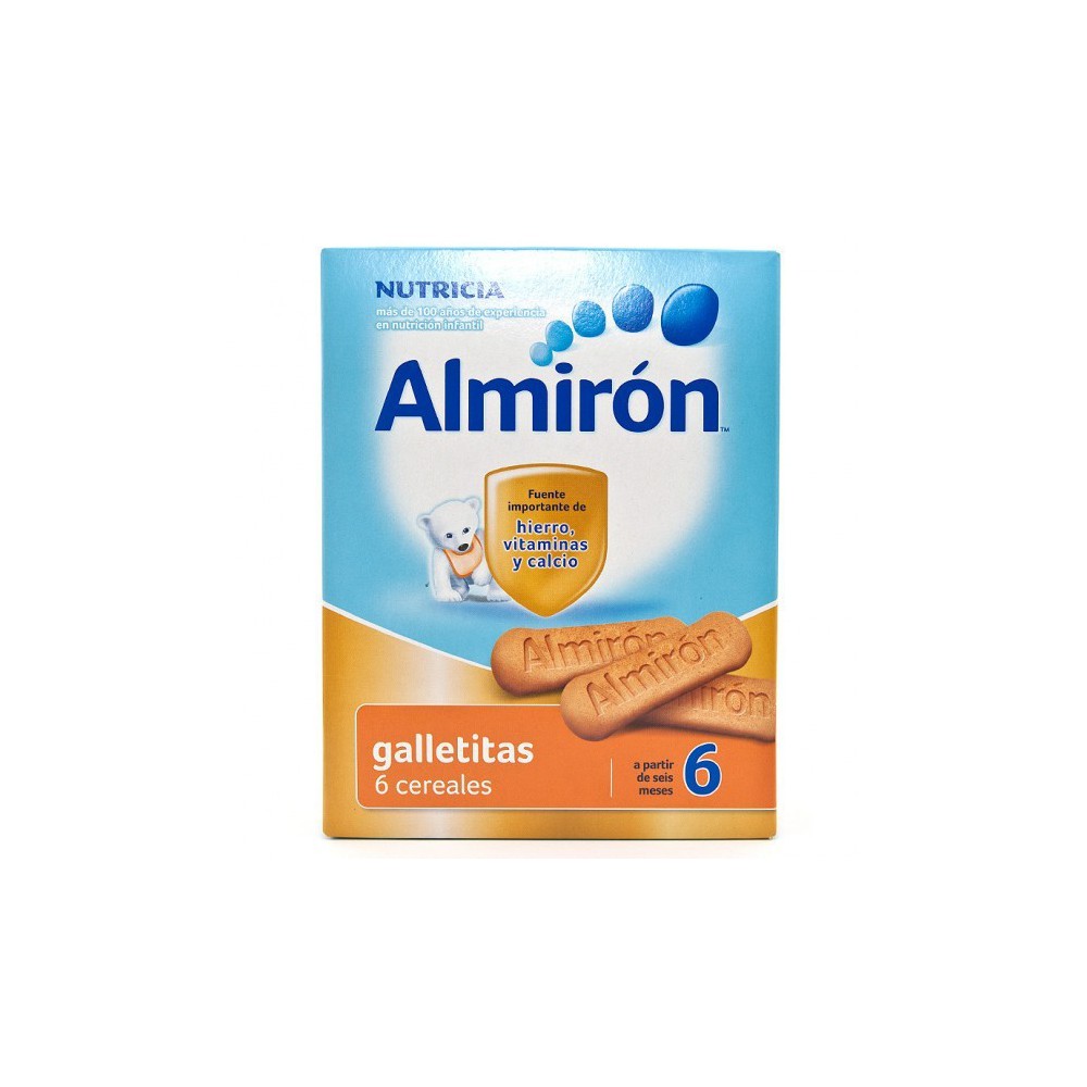 Las galletitas 6 cereales Almirón son una fuente importante de hierro, vitaminas y calcio. Están elaboradas con una mezcla de cereales que contiene hidratos de carbono de absorción lenta y de fácil asimilación, aportando a tu bebé un gran número de vitaminas y minerales. Además, son el complemento nutritivo ideal en el inicio de la alimentación complementaria a partir del 6º mes, ya que contienen: