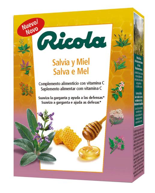 Los caramelos defensas Ricola Salvia y Miel Ricola son caramelos sin azúcar elaborados a base de 13 hierbas suizas que proporcionan un suave efecto balsámico y refrescan la garganta. Este delicioso producto ofrece un sabor diverso y se presenta en una caja de 50 g.