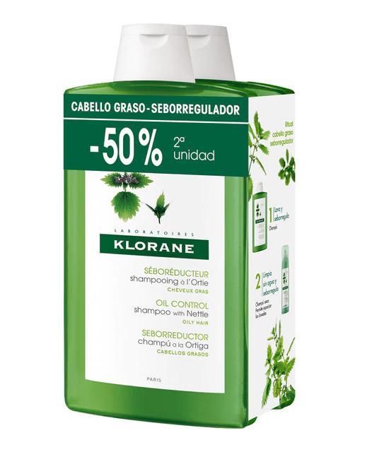 El Duplo Champú a la Ortiga Klorane, en formato de 2 x 400 ml, está especialmente formulado para cabellos grasos. Este champú tratante seborregulador a la ortiga lava con suavidad, respetando el equilibrio del cuero cabelludo. Gracias a su base lavante equilibrante enriquecida en extracto de ortiga, este champú elimina y regula suavemente el exceso de sebo. Una vez purificado, el cuero cabelludo queda limpio, y el cabello ligero y suelto durante más tiempo, lo que permite espaciar los lavados de forma progresiva.