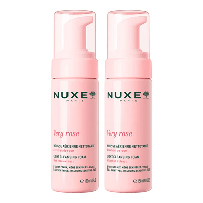 La fórmula de NUXE Very Rose Espuma Ligera Limpiadora combina agua purificada con extracto natural de rosa centifolia, reconocido por sus propiedades calmantes y antioxidantes. Contiene tensioactivos suaves que limpian eficazmente la piel sin causar resequedad, además de glicerina para mantener la hidratación natural del rostro. La fórmula también incluye extractos vegetales que aportan frescura y suavidad, y está libre de parabenos y sulfatos, lo que la hace adecuada incluso para pieles sensibles.