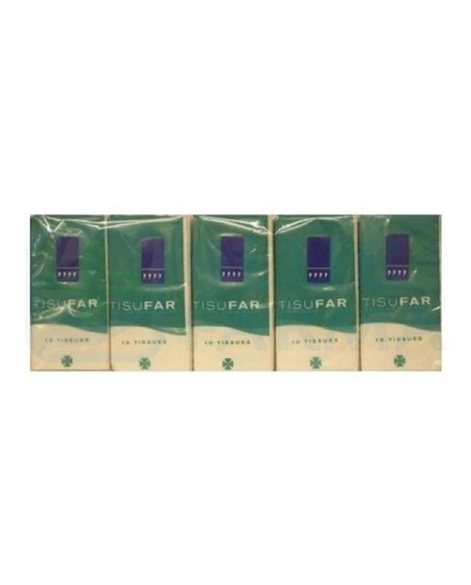 Los pañuelos de bolsillo Tisufar están disponibles en presentaciones de 10 paquetes, cada uno con 10 pañuelos. Estos pañuelos son de 3 capas, lo que garantiza una mayor suavidad y resistencia para el uso diario.